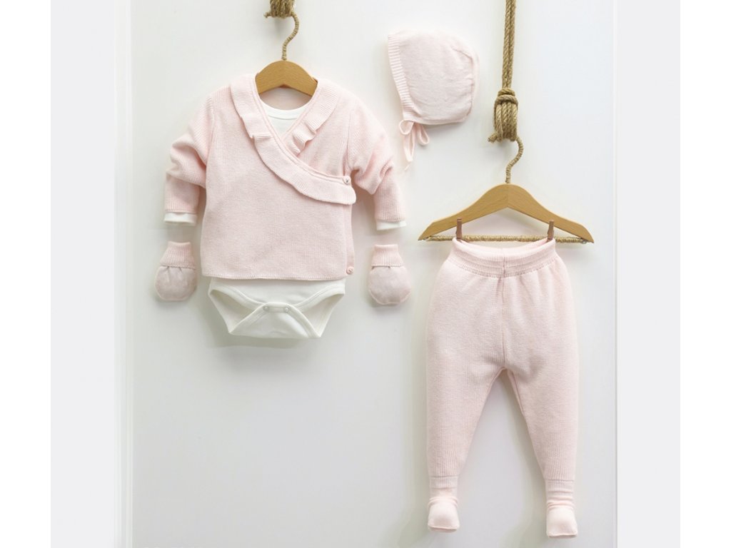 Pětidílná bavlněná kojenecká souprava do porodnice s volánkem