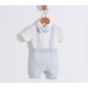 Tento set pro malého gentlemana se skládá z pletených kraťasů, košile a pleteného motýlka. Sada je dostupná v různých barvách. Každý z nich je barevně sladěný. Tento set je vhodný zejména na nošení v teplých dnech. Všechny materiály jsou nejkvalitnější a mají nejlepší pohodlí při nošení.