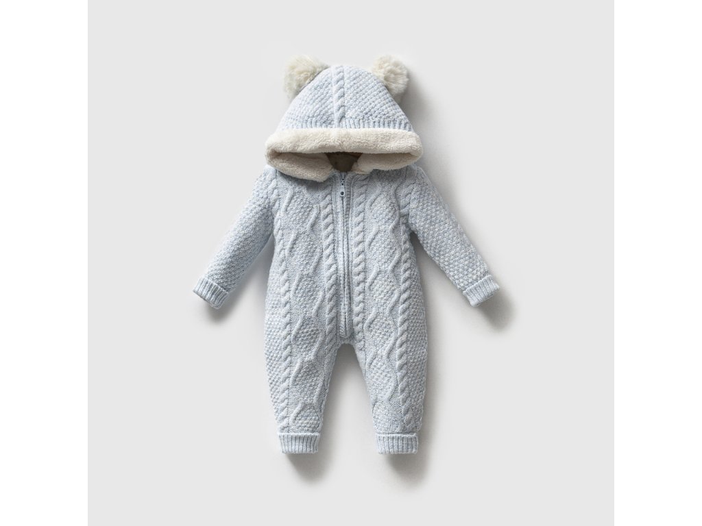 Je vyrobená speciálně pro chladné podzimní a zimní dny. Skládá se z hustého úpletu z vnější strany a jemného a hřejivého plyše zevnitř. Díky kapuci zůstane hlavička vašeho miláčka vždy pěkně v teple. Bambulky na kapuce dodají celku roztomilý vzhled. Jemný vzor úpletu vypadá nadčasově krásně a zip je uprostřed až k rozkroku.