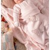 Tento luxusní novorozenecký set se skládá celkem z pěti dílů - overal, botičky, čepička, palčáky a dečka.