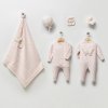 Tato 5dílná novorozenecká souprava je vyrobena z jemného úpletu.