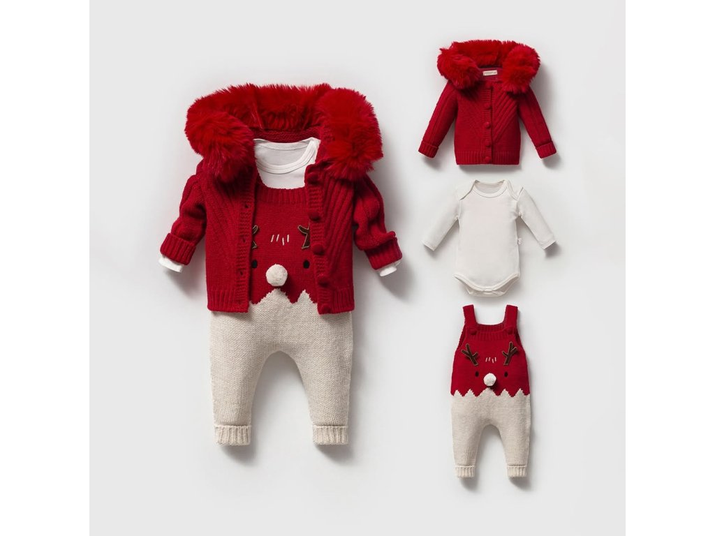 Tento nádherný set se skládá z body s dlouhým rukávem, pleteného overálku a svetříku. Pletený svetr má vpředu velmi decentní copánkový vzor. Lano je vyrobeno z jemné a měkké příze a nepoškrábe jemnou pokožku vašeho miminka. Tato sada vás přesvědčí svou kvalitou a pohodlím.