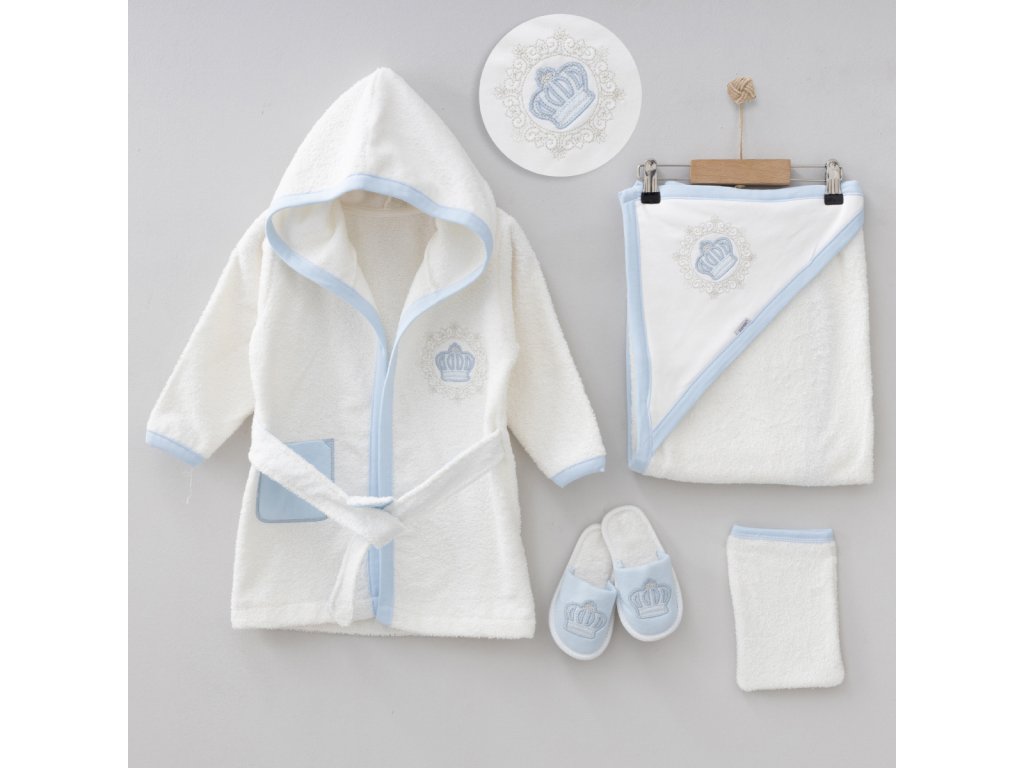 Příjemné jemné froté, výšivka Prince, ozdobné lemování, kapuca dobře zahřeje hlavičku miminka po koupeli, pásek na převázání.